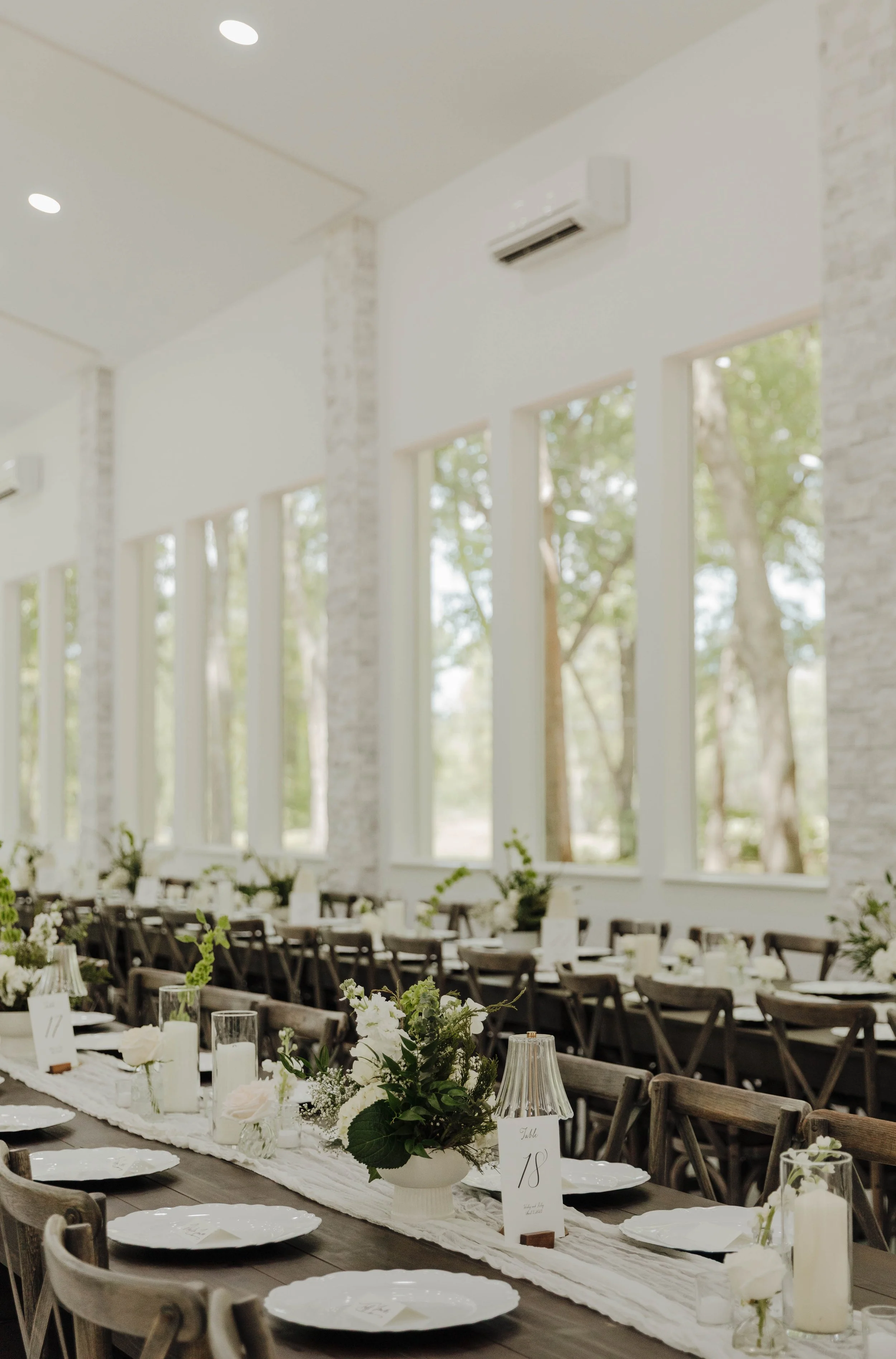 One of the highlights of The Whitewood Ranch is the Grand Verre, an exquisite glasshouse venue that offers couples a memorable setting for their wedding. The Grand Verre features tall stone pillars, expansive windows, and an abundance of natural light, creating a bright and airy atmosphere that is perfect for any celebration. This beautiful space brings the outdoors in, offering you the best of both worlds: the elegance of an indoor setting combined with stunning views of nature. In case you're hosting an intimate ceremony or a grand reception, The Grand Verre provides the perfect backdrop to make your special day truly memorable.
